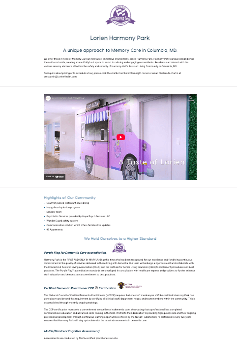 With the rates of Dementia and Alzheimers on the rise, Lorien Health Services decided to create an immersive experience that challenges the ideas of traditional Memory Care. From the ground up, I created a new brand for Lorien’s Memory Care services. Collaborating with departments across the company, I was able to create marketing collateral, Facebook Ads, social media campaigns, and website copy to properly sell this innovative approach to Memory Care.